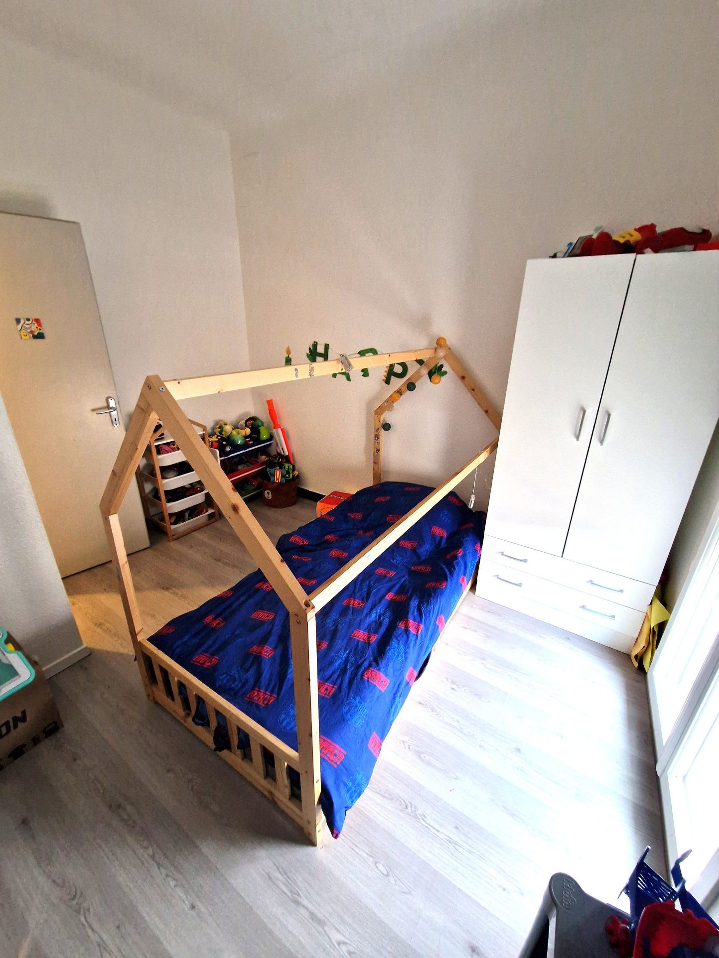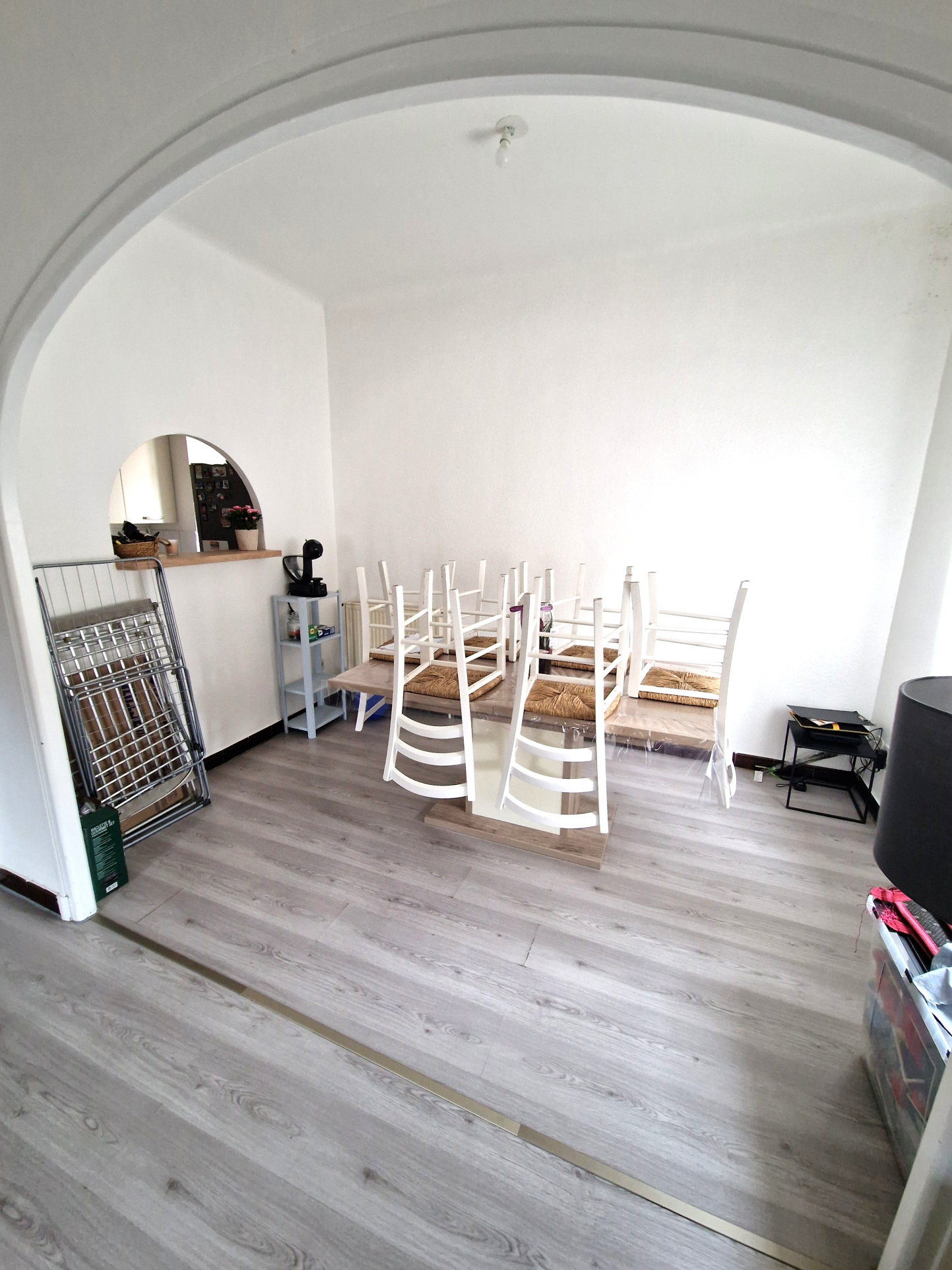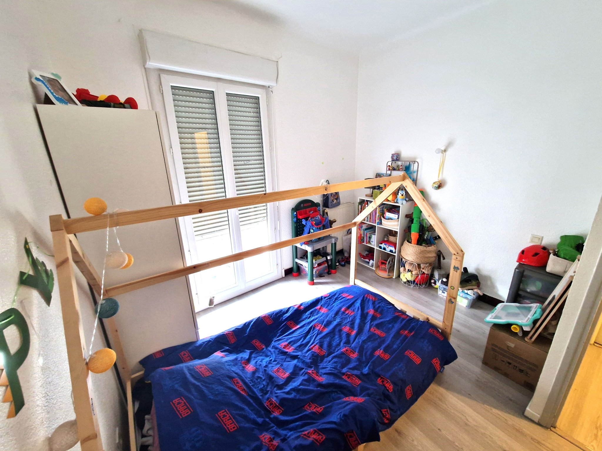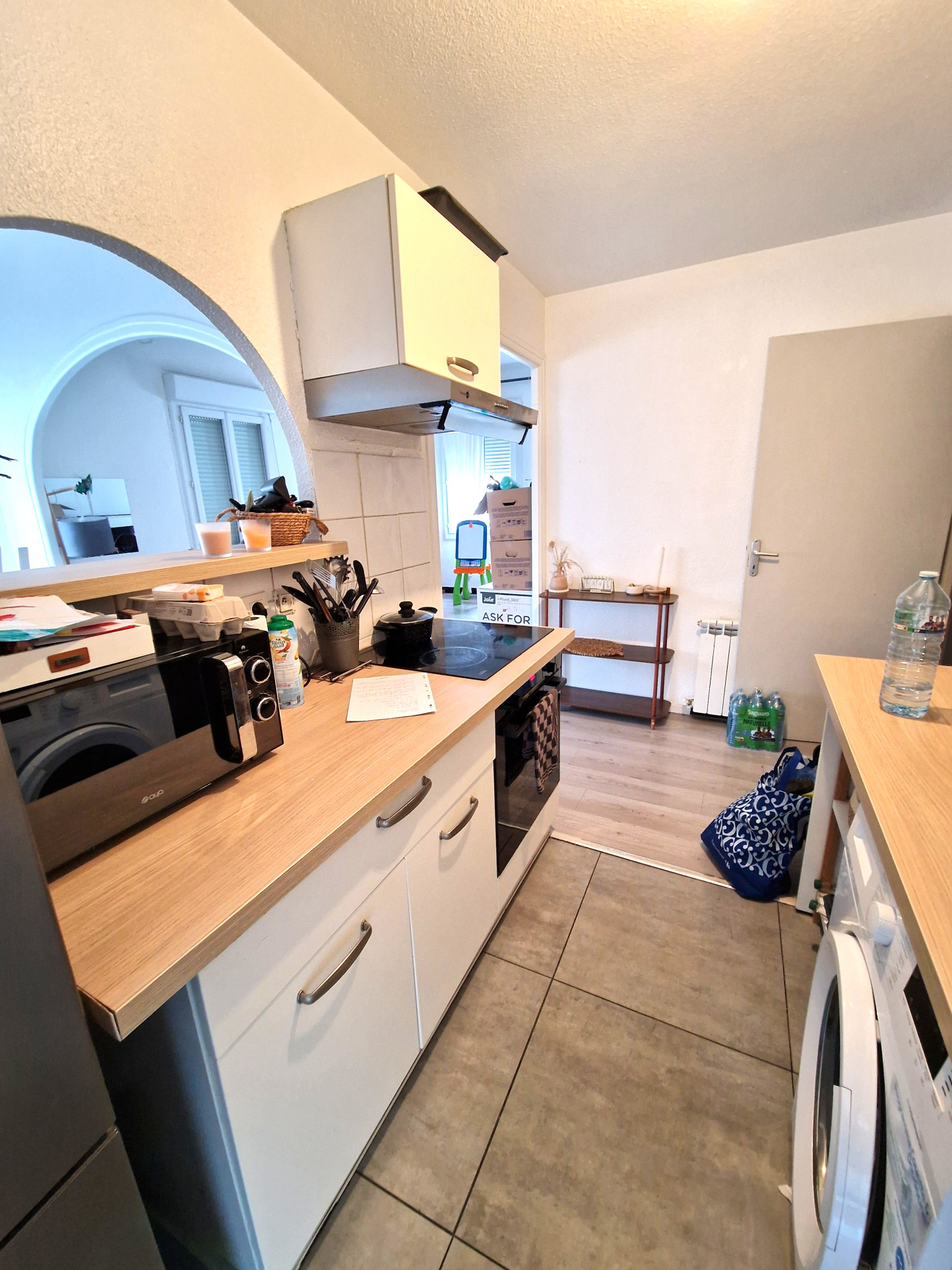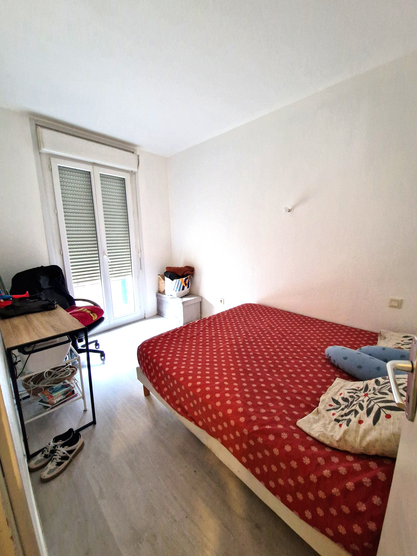 Composé de 3 chambres dont deux donnant sur petit balcon, une cuisine aménagée et semi équipée (meubles hauts et bas, plaque vitrocéramique, hotte et évier) avec passe-plat, un séjour lumineux avec coin salle à manger, salle d'eau avec douche à l'italienne et meuble vasque, WC séparés, et terrasse spacieuse.